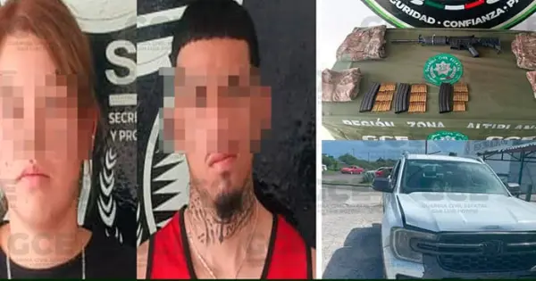 Los presuntos se identificaron como Ángel “N” de 23 años y Alejandra “N” de 20 años, quienes ahora enfrentan cargos por portación de arma de fuego y lo que les resulte.