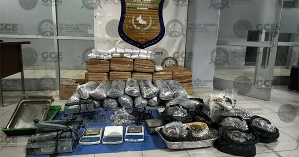 Durante la diligencia, se aseguraron diversos indicios relacionados con posibles actividades de narcomenudeo, entre ellos bolsas con hierba seca con características de la marihuana, con un peso aproximado de 154 kilogramos; artefactos conocidos como "ponchallantas" y equipo para dosificación y empaque, como básculas grameras, selladoras y material diverso. Todos los indicios fueron puestos a disposición de la autoridad correspondiente para su análisis e integración a la investigación.