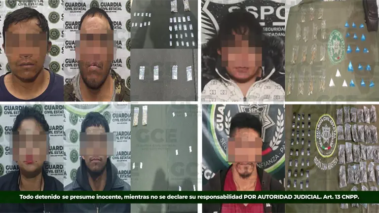 Un adolescente de 15 años fue detenido por elementos de la Guardia Civil Estatal (GCE) durante operativos contra el narcomenudeo en San Luis Potosí, en los que también fueron aseguradas otras seis personas y diversas dosis de droga.