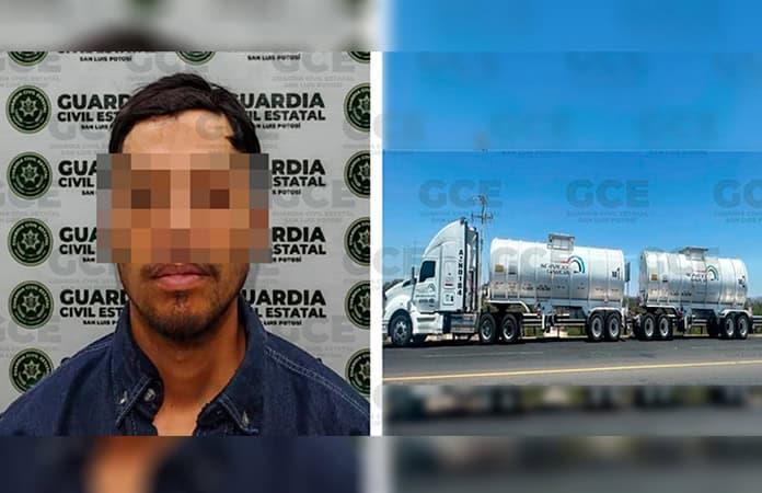 MEXQUITIC.- Operativos de seguridad efectuados en la comunidad Las Moras, perteneciente al municipio de Mexquitic de Carmona, permitieron que efectivos de la Guardia Civil Estatal adscritos a la División Caminos, detvieron al conductor de una pipa por probable posesión ilegal de 62 mil litros de hidrocarburo.