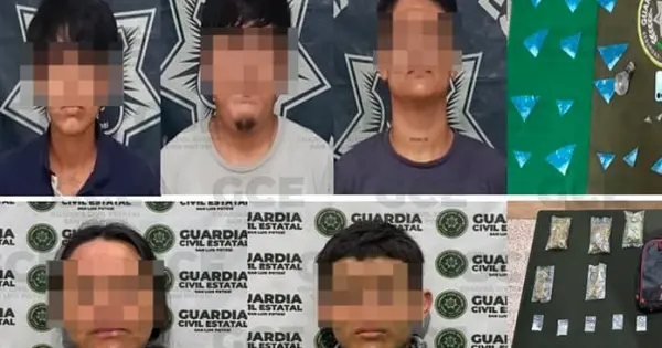 Por otra parte, en el municipio de Ciudad Valles, quedaron detenidos tres hombres identificados como Pedro “N” y Juan “N”, ambos de 21 años de edad, así como Rolando “N” de 27 años, tras asegurarles 16 dosis de “cristal”; 12 de marihuana; cinco de “crack” y un teléfono.