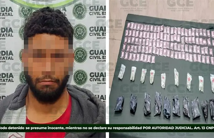 Elementos de Guardia Civil Estatal, en tareas de vigilancia efectuadas en la comunidad de Illescas, el municipio de Villa de Ramos, detuvieron a José “N” de 24 años, quien llevaba consigo 109 dosis de “cristal” y 20 bolsas con marihuana.