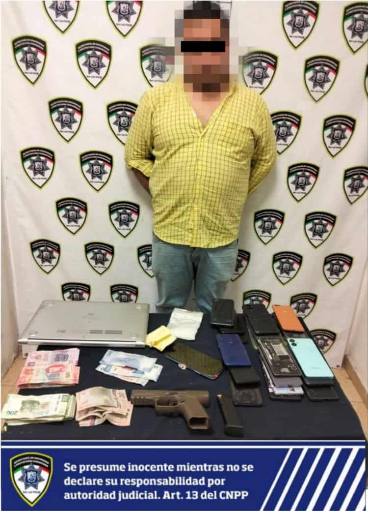 En conflicto vial, detienen a sujeto con arma, "cristal", celulares y efectivo