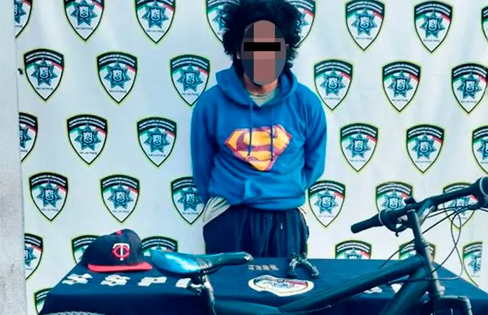 Vecinos de las calles reportaron a través del comité, la presencia de un hombre a bordo de una bicicleta que había causado daños a un comercio con razón social AquaPura Express, ubicado en las calles de Luis de Velasco y Juan Ruiz de Alarcón. Al llegar al lugar, los oficiales constataron daños en el depósito de monedas, por lo que realizaron un recorrido en las inmediaciones para ubicar al presunto responsable.