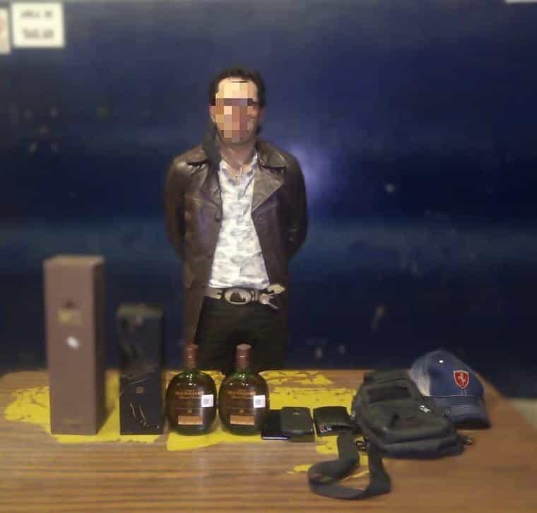 Ante el llamado, los agentes se presentaron en el sitio entrevistándose con la parte afectada quien indicó que personal de seguridad del establecimiento detectó al implicado cuando intentaba salir del sitio con cuatro botellas de whisky y tequila con un valor total de 6 mil 440 pesos, costo que no fue realizado por el sujeto.