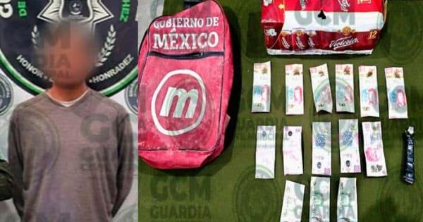 Mediante una llamada se recibió un reporte en el cual se indicó que un individuo ingresó a un OXXO en la colonia Benito Juárez, donde se llevó un paquete de cervezas y dinero en efectivo, proporcionando las características del señalado.