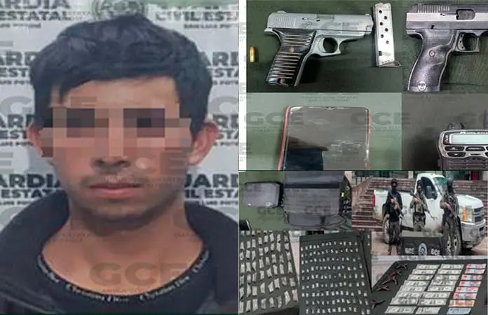 VILLA DE RAMOS.- Un sujeto que traía armas y droga, fue capturado por elementos de la Guardia Civil Estatal en el municipio de Villa de Ramos, lo detectaron en la comunidad de Las Cruces en una camioneta sin placas de circulación .