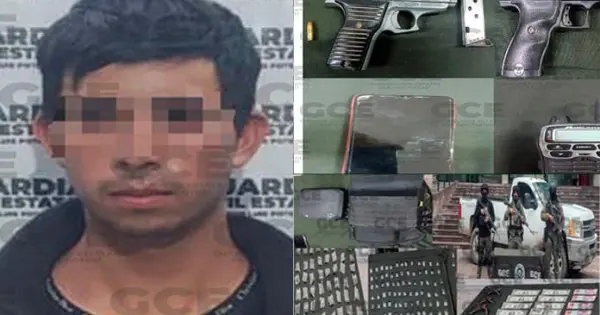 En el operativo desplegado en calles de comunidad mencionada, los efectivos de la Guardia Civil Estatal lograron la detención de Anuar “N” de 20 años de edad, luego de que fuera detectado a bordo de una camioneta GMC modelo 2011, color blanco, sin placas, en el que se desplazaba.