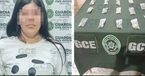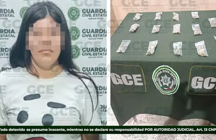 Labores preventivas efectuadas por la Guardia Civil Estatal en la capital potosina, derivaron en la detención de una mujer por presuntamente dedicarse a la venta de estupefacientes.