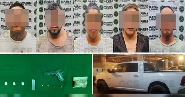 Por lo anterior, Bernardo “N” de 32 años de edad, David “N” de 29 años, Jonathan “N” de 25 años, Claribel “N” de 38 años, Sandra “N” de 39 años y un adolescente de 14 años, fueron puestos a disposición de la Fiscalía General de la República.