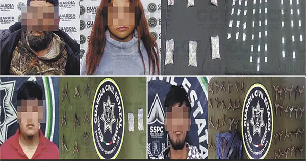 En labores de inteligencia y vigilancia estratégica realizadas en la colonia Insurgentes de Escalerillas, en la capital potosina, los agentes lograron la detención de Miriam "N" de 23 años y Jorge "N" de 48 años.