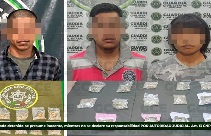 Operativos de inteligencia desarrollados en los municipios de Soledad de Graciano Sánchez y Ciudad Valles, permitieron la detención de tres presuntos, por probables delitos contra la salud, en su modalidad de posesión de droga.