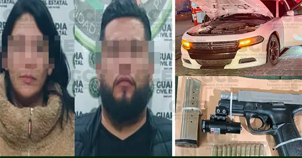 Un operativo realizado por elementos de la Guardia Civil Estatal en el Barrio de San Miguelito de la capital potosina, derivó en la detención de Juan "N" de 39 años y Alejandra "N" de 33 años, quienes fueron detenidos en posesión de un arma de fuego calibre 9 milímetros, con un cargador y 11 cartuchos útiles.