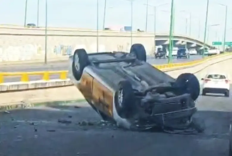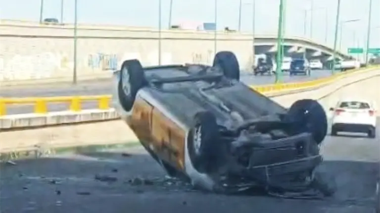 El conductor del transporte personal y su vehículo terminaron volcados en la lateral de carretera a Matehuala, a la altura de avenida San Pedro.