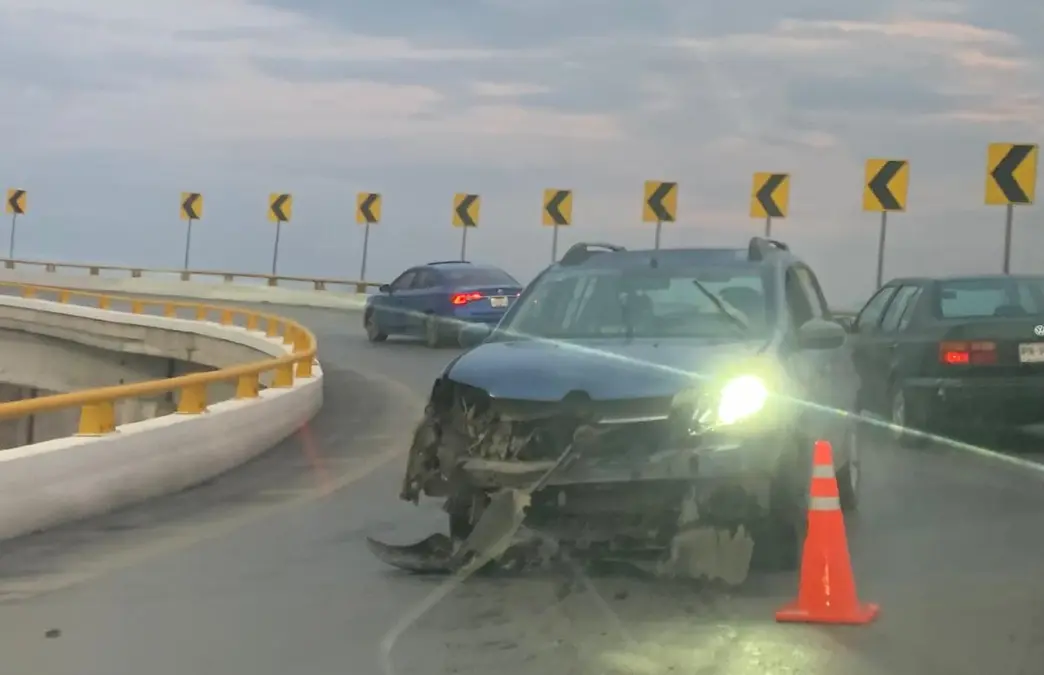 La mañana de este lunes, se registró un accidente vehicular en el distribuidor Juárez, específicamente en el ramal que conecta la carretera 57 con Salvador Nava, dejando como saldo únicamente daños materiales.
