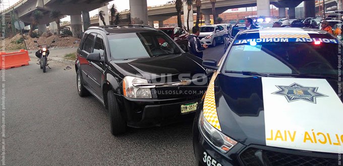 El conductor de una camioneta Chevrolet, que aparentemente se encontraba bajo los efectos del alcohol, chocó contra una patrulla de Seguridad Pública Municipal que daba vialidad en la plataforma circular del Distribuidor Vial Benito Juárez, en los hechos no hubo personas lesionadas pero los daños materiales ascienden a varios miles de pesos.