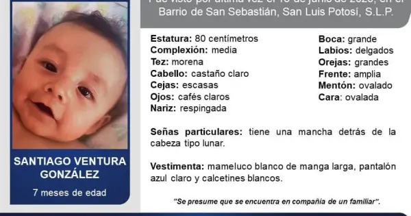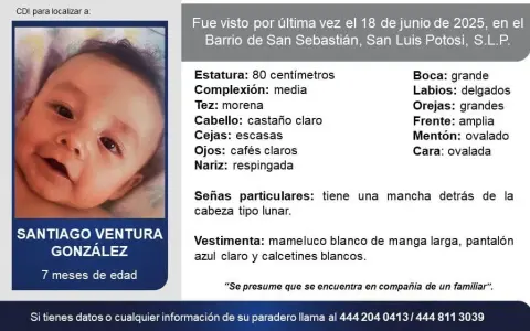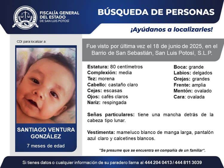 Emiten ficha de búsqueda de un menor de 7 meses