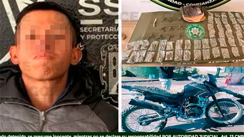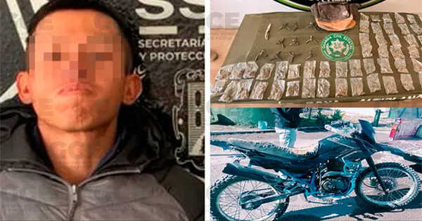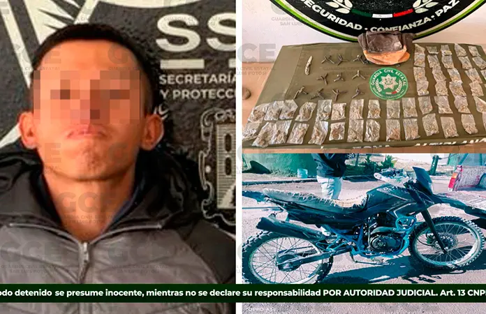 Durante la intervención en la colonia Santa Fe, los agentes detectaron al sujeto cuando se desplazaba a bordo de una motocicleta, por lo que le marcaron el alto y procedieron a realizarle una revisión, encontrándole 50 dosis de marihuana que al parecer andaba vendiendo en la zona, así como 10 artefactos de varilla corrugada mejor conocidos como "ponchallantas".