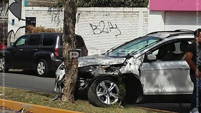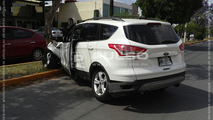 Sólo daños materiales por varios miles de pesos, fueron registrados durante el choque entre dos vehículos al sur de la capital potosina, y en donde una de las personas resulto con golpes leves.
