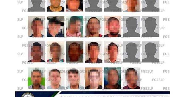 Las detenciones se realizaron principalmente en los municipios de San Luis Potosí, Soledad de Graciano Sánchez, Matehuala, Rioverde, Villa de Arista, Axtla de Terrazas, San Martín Chalchicuautla, Tamazunchale y Tamuín. De esos aseguramientos los 26 son hombres y una mujer.