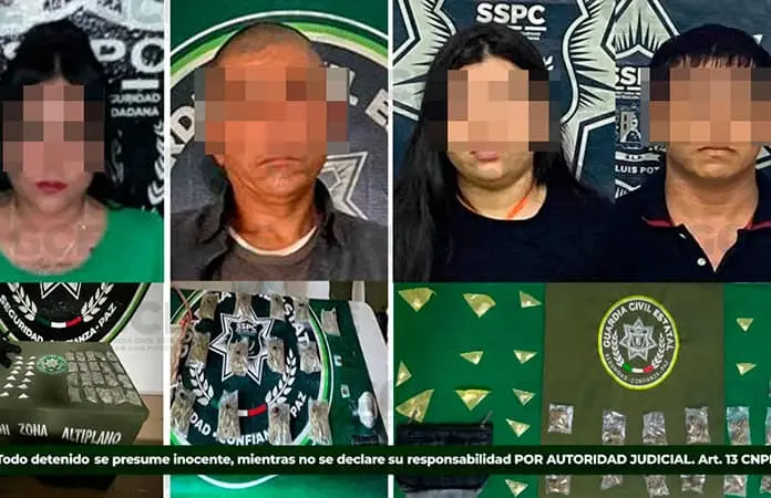Mientras que, en el municipio de Cárdenas, en el Barrio de Guadalupe, efectivos de la GCE detuvieron a José “N” de 37 años, luego de asegurarle 13 bolsas con marihuana y dos dosis de “cristal”; por último, en el municipio de Matehuala, elementos de la GCE detuvieron a Zoila “N” de 31 años, tras el operativo coordinado con personal de la Defensa, quienes lograron decomisar 20 bolsas con marihuana, 14 dosis de cocaína y una bolsa color negro.