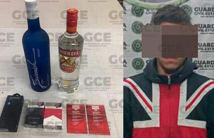 Al presunto, identificado como Jovani “N” de 23 años de edad, se le aseguraron dos botellas de vino y otra de vodka, así como dos cajetillas de cigarros, un par de audífonos y dos chips para teléfono celular, que eran del botín obtenido en los atracos.