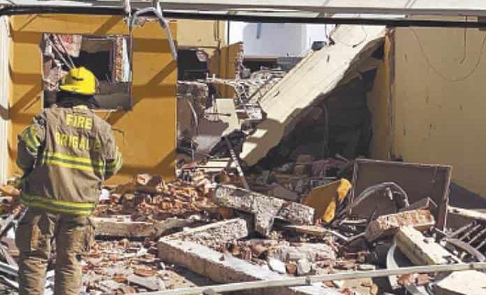 Debido al fuerte estruendo gran parte del inmueble se vino abajo y los escombros quedaron encima de una mujer de la tercera edad, quien momentáneamente quedó sepultada.