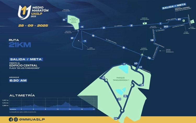 Se tiene listo el operativo de vialidad que la Secretaría de Seguridad y Protección Ciudadana (SSPC) de la Capital desplegará con motivo del Medio Maratón de la Universidad Autónoma de San Luis Potosí (UASLP) 2025, el cual tendrá lugar este domingo 28 de septiembre a las 6:30 horas frente al edificio Central de la Universidad Autónoma de San Luis Potosí, ubicado en Álvaro Obregón en el Centro Histórico.