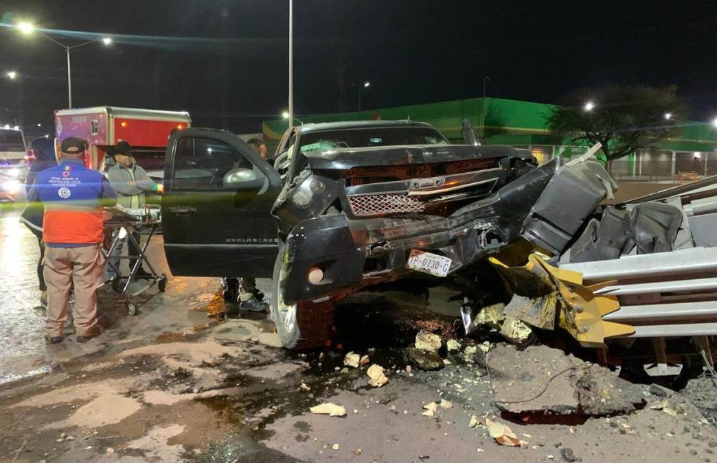 Los hechos, a las 05:30 de esta mañana, cuando el conductor de una camioneta Chevrolet de color negro que circulaba sobre el bulevar con dirección hacia la la carretera a México, pero al llegara al puente atirantado, perdió el control hacia su derecha e impactó con el parachoques y un poste metálico de la señalética.