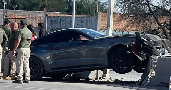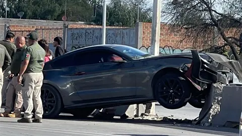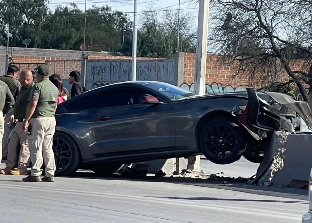 Los hechos cerca de las 15:30 horas de este viernes, cuando el conductor de un automóvil Ford Mustang, de color negro, circulaba sobre camino antiguo a Piedras Negras, pero al incorporarse al Periférico, antes de llegar a Puerta Real, perdió el control e impactó con el muro de contención y un poste metálico de alumbrado público.
