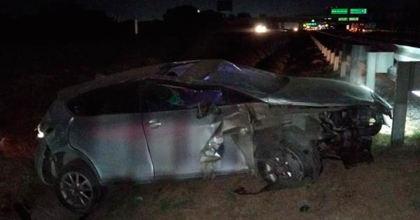 Fue así como el automóvil se impactó contra la barra metálica de contención y cruzó la misma para volcar en la cuneta divisoria de carriles quedando en posición normal.