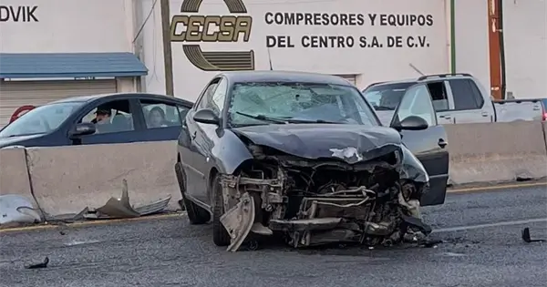 Al llegar al tramo comprendido entre las calles Lázaro Cárdenas y Fernando Samarripa, en la colonia Rivas Guillén, la conductora perdió el control de la unidad al intentar esquivar una escalera que se encontraba en la zona de rodamiento.