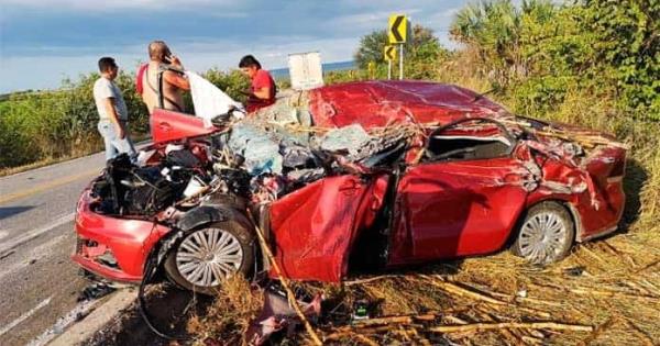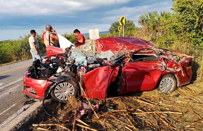 Sin embargo, en la curva conocida como El Tigre, cerca del ejido Laguna del Mante, un tráiler color blanco acoplado a un remolque en el que transportaba varias toneladas de caña, les invadió carril y chocó contra el sedán.