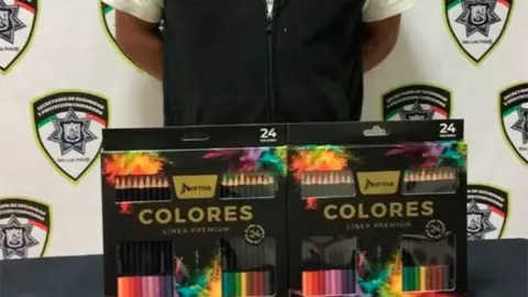 De acuerdo al reporte de los hechos, personal de seguridad del comercio solicitó el apoyo policial al detectar a un hombre que sustrajo de la sección de papelería, cajas de colores Premium, con un valor de 558 pesos, los cuales no pagó al salir del comercio.