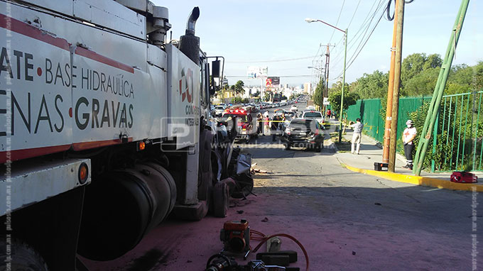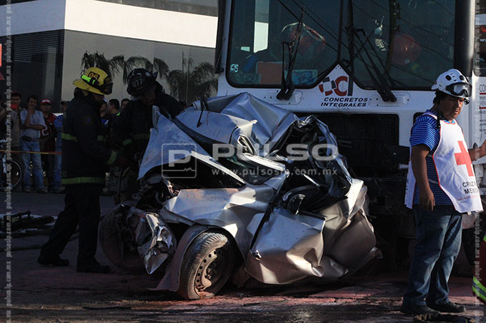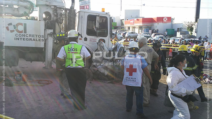 Tras el accidente registrado la tarde de este miércoles sobre la avenida Chapultepec y Periférico Poniente, en la ciudad capital, en donde un vehículo motobomba de concreto embistió a un automóvil donde perdieron la vida dos mujeres y un hombre adultos, la Procuraduría General de Justicia de San Luis Potosí (PGJSLP) inició las investigaciones correspondientes para deslindar responsabilidades.