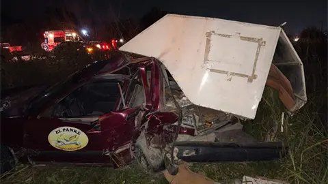 El Mazda quedó atravesado sobre la cinta asfáltica, con el frente destrozado, aunque su conductor resultó ileso.