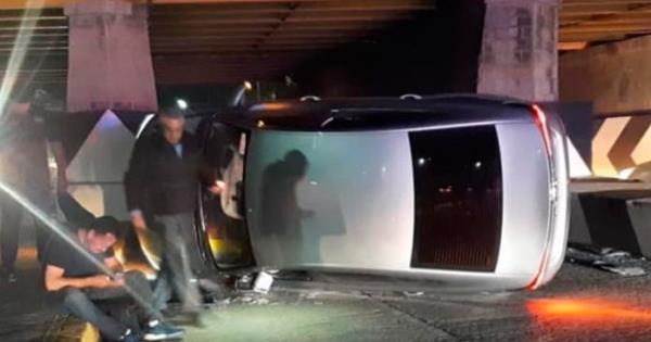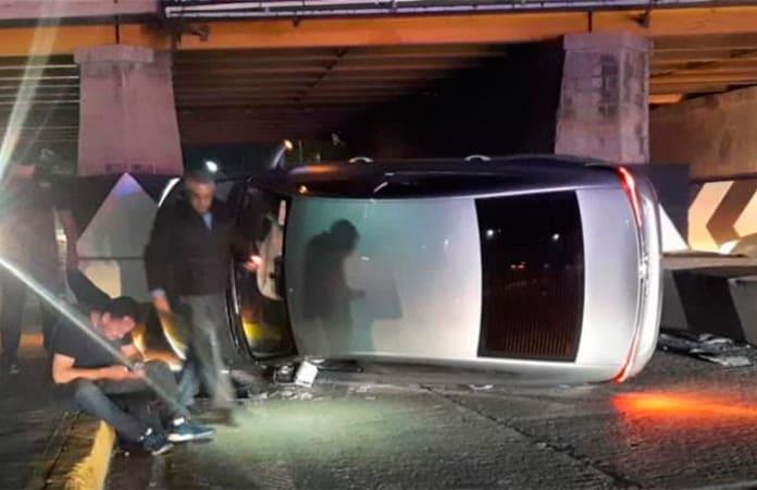 En el primer hecho se trató de un automóvil color plata que se desplazaba sobre el río Santiago con dirección a la carretera a Matehuala. El aproximarse al puente de la avenida soledad, el conductor perdió el control del volante ala derecha y de esta forma chocó contra la contención de uno de los muros para finalmente volcar el automóvil, quedando sobre su costado izquierdo.