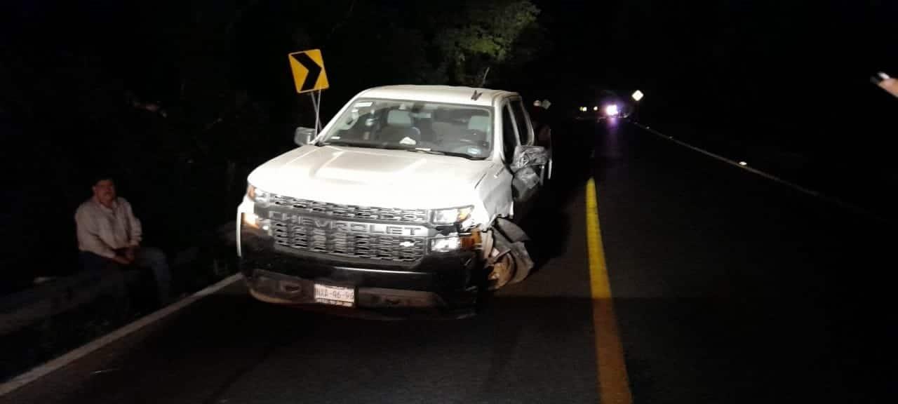 TAMASOPO. Un empleado de Gobierno Federal que conducía una camioneta de lujo, chocó contra un vehículo en el lugar conocido como El Serranito.