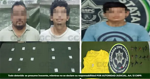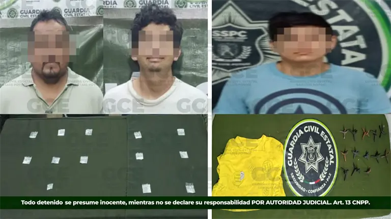 La Guardia Civil Estatal (GCE) detuvo a tres personas en operativos realizados en la delegación de La Pila y en Ciudad Valles, como parte de las acciones de prevención del delito en el estado.