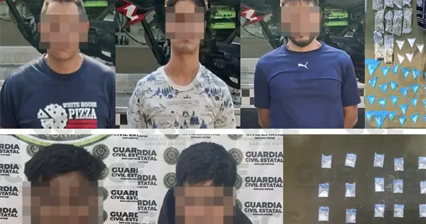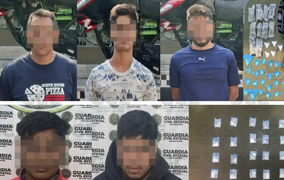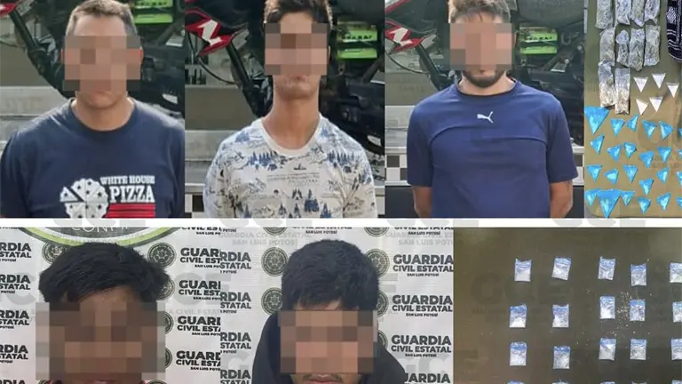 Elementos de la Guardia Civil Estatal de San Luis Potosí detuvieron a cinco personas en acciones distintas realizadas en los municipios de Ciudad Valles y Villa de Arriaga, donde aseguraron diversas dosis de droga y otros objetos.