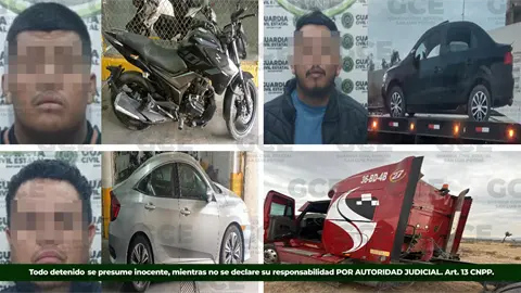 La Secretaría de Seguridad y Protección Ciudadana del Estado informó que, como resultado de recorridos preventivos y operativos de seguridad, elementos de la Guardia Civil Estatal detuvieron a tres personas en posesión de vehículos con reporte de robo, además del aseguramiento de un tractocamión por parte de la División Caminos.