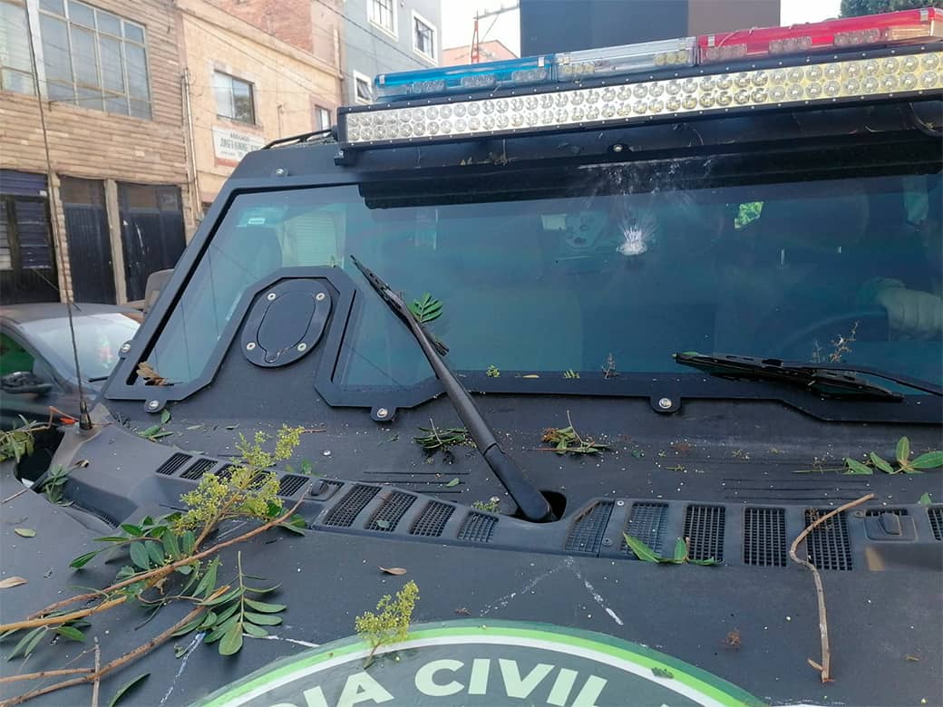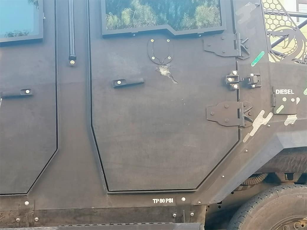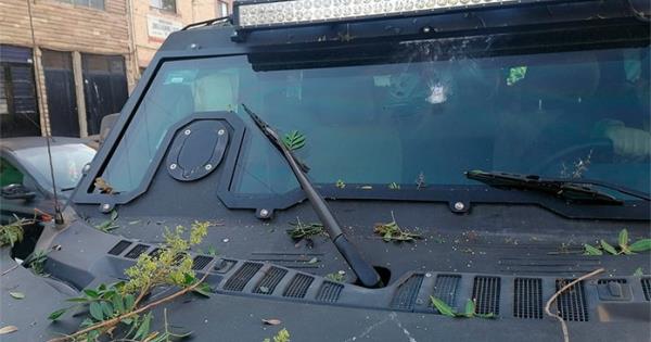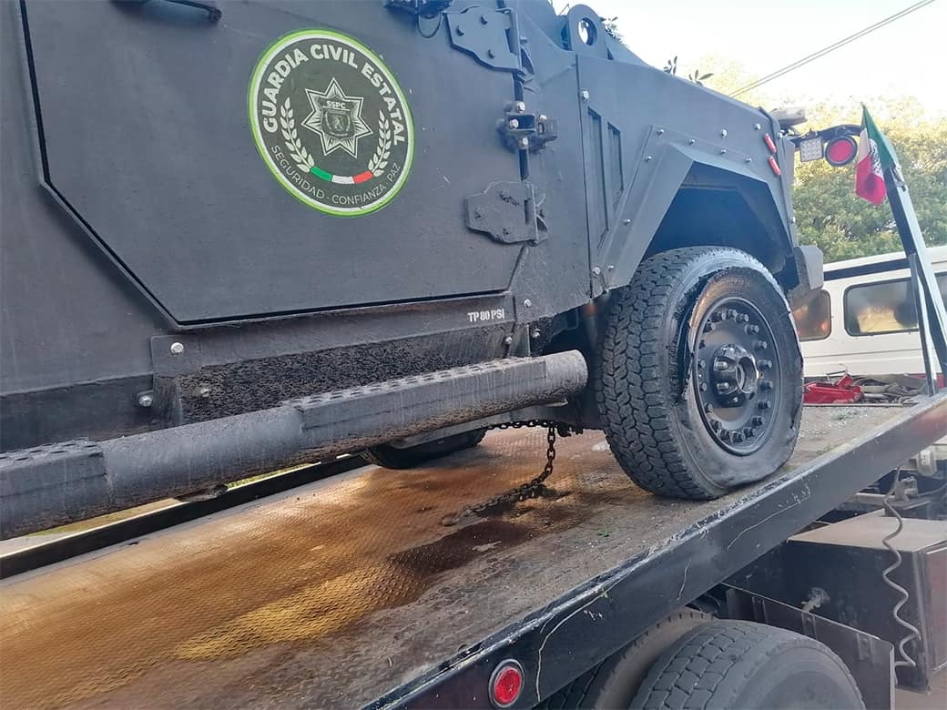 Al menos un vehículo de la Guardia Civil Estatal resultó con daños tras el reporte de una balacera en fraccionamiento Villa Magna.