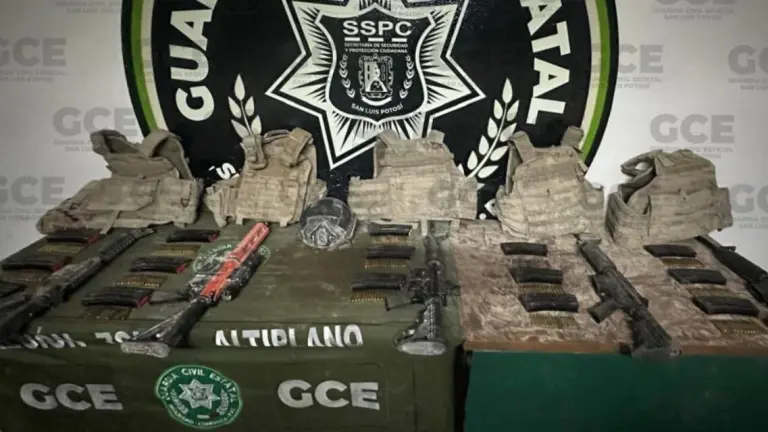 En el lugar, "se aseguraron cinco armas largas, 15 cargadores, 225 cartuchos, así como chalecos y un casco táctico", informó la corporación.