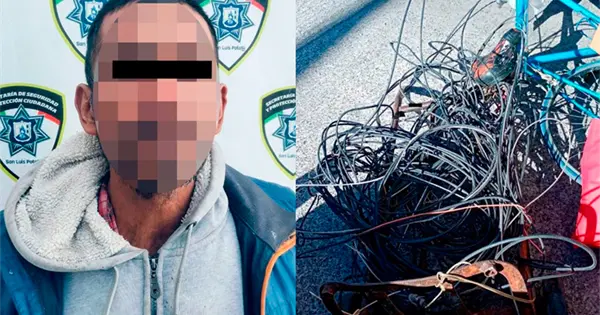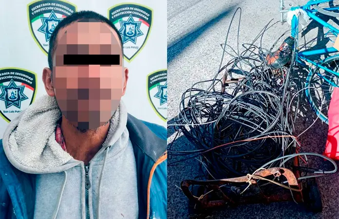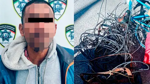 Ante esto se realizó la detención de Jaime "N" de 47 años, quien tenía en las inmediaciones un diablito de metal con más metros de cable de alumbrado público, dando un total de 15 metros, además de tres bolsas con diversos metales y una bicicleta.