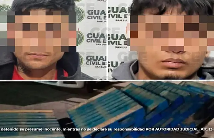 Los elementos policiales se presentaron en las calles Camino Real y Circuito Poniente, en la Unidad Ponciano Arriaga, en donde fueron detenidos Héctor N. de 26 años de edad y Jesús N. de 25 años de edad por intentar sustraer nueve tarimas de madera de la Bodega Aurrerá que se ubica en la carretera a Rioverde, cerca del lugar.