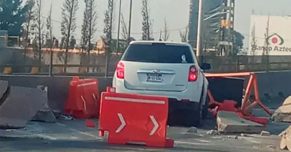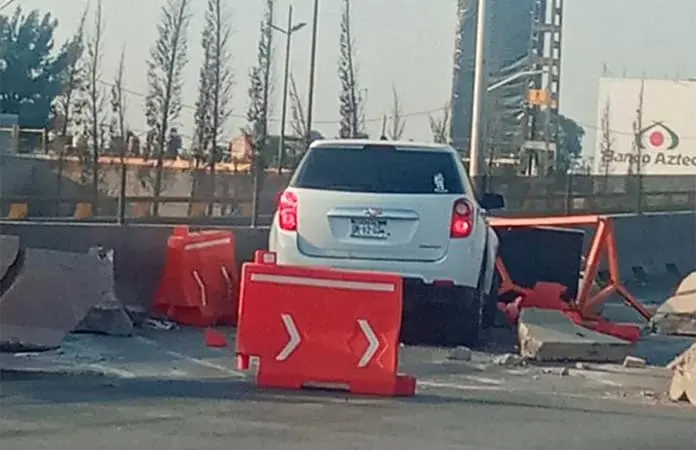 Fue al llegar a la subida del puente de la calle 71, en donde el conductor no se percató de la presencia de señalética consistente en barras de concreto y de plástico que prohíben el paso hacia la cima del puente que se encuentra cerrada la circulación por los trabajos de reparación.
