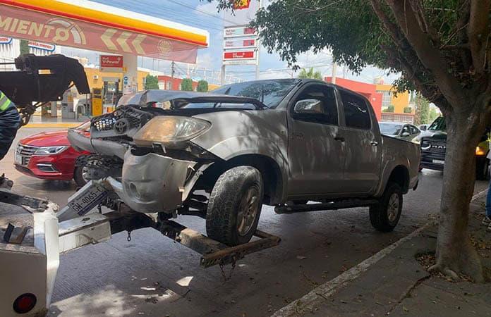 El accidente tuvo lugar cerca de las diez de la mañana de este sábado, cuando la camioneta Toyota Hilux color gris, se desplazaba por el bulevar del Río Santiago con dirección de Morales hacia la carretera a Matehuala.
