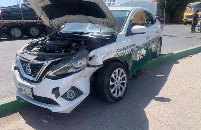 Al tratar de incorporarse a la avenida Industrias, el taxi chocó contra un automóvil Nissan KIA de color guinda que por ahí circulaba en esos momentos, el cual luego del impacto fue proyectado contra un poste metálico de alumbrado público ubicado en el camellón central.