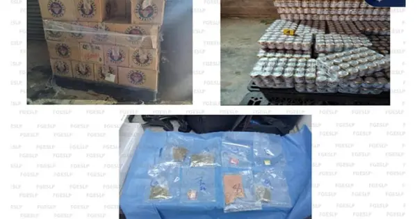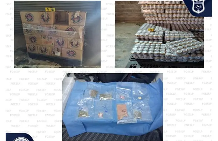 VILLA DE RAMOS.- Fue cumplimentada una orden de cateo por parte de la Fiscalía General del Estado a una bodega de la localidad Dulce Grande, perteneciente al municipio de Villa de Ramos, en donde se aseguró diversa mercancía presuntamente robada y droga.