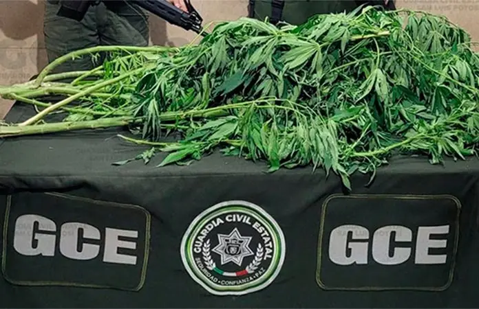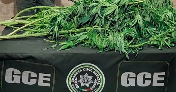 Una planta de marihuana que ya alcanzaba gran altura, fue asegurada por elementos de la Guardia Civil Estatal en la colonia Prados de San Vicente primera sección, siendo remitida ante la Fiscalía para que se realicen las investigaciones pertinentes.